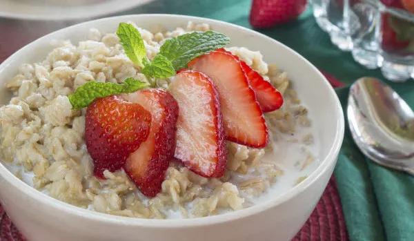 Measure a 1/2 cup dry serving of old-fashioned or steel-cut oats oatmeal into a microwave-safe bowl (quick cook or instant versions are OK if you need to save more time). Pour enough water over the oatmeal to cover, and stir. Microwave on high for 2 1/2 to 3 minutes until done. If you prefer a sweeter taste, try adding fresh fruit or a dash of vanilla extract. To balance out this complex carbohydrate-containing meal with protein and healthy fat, add chopped nuts and/or seeds like chia or ground flaxseed.