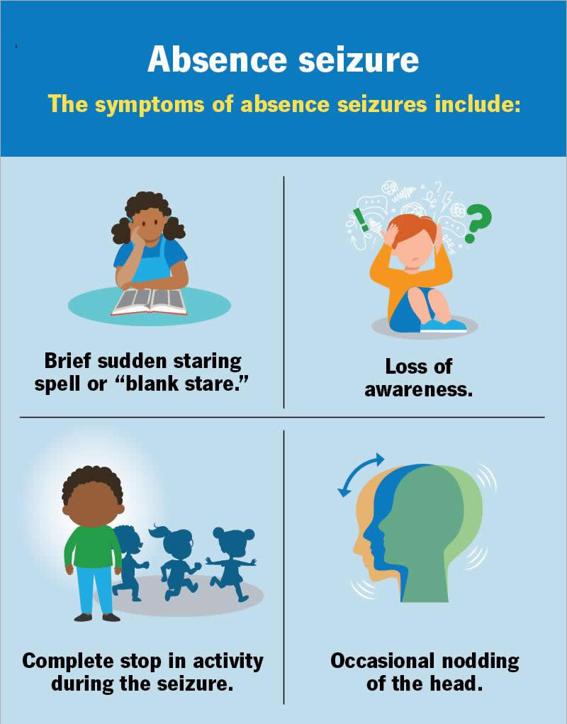 Absence seizures are short seizures that happen without warning and usually last for a few seconds. They’re more common in children but adults can have absence seizures, too. Absence seizures are often mistaken for daydreaming or a lack of attention. Antiseizure medications treat this type of seizure.