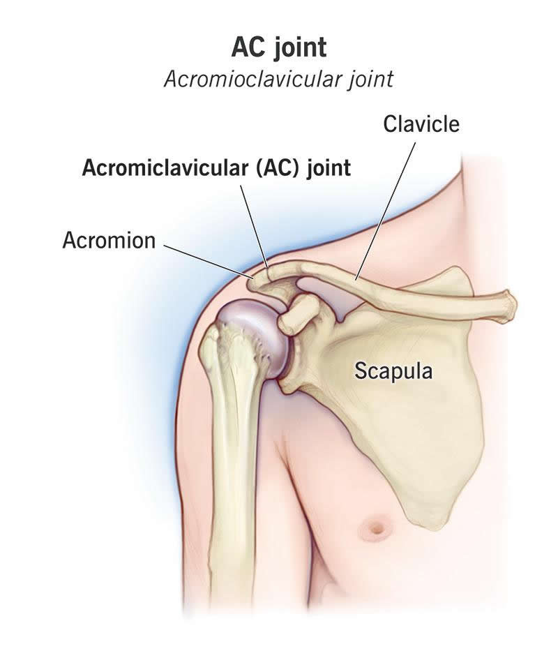 The AC (acromioclavicular) joint is part of your shoulder. It’s the joint where your collarbone connects to your shoulder blade. It helps you move your arms front to back and tilt them up and down. AC joint injuries are the most common shoulder injuries. Visit a provider if you’re experiencing new or worsening symptoms like pain and stiffness.