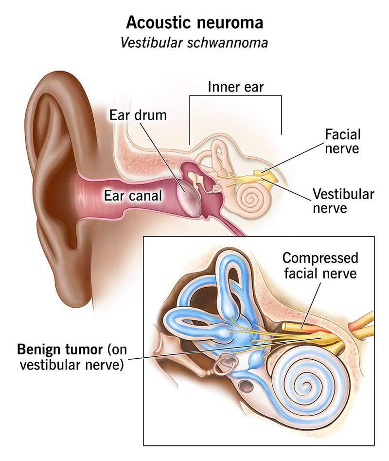 Acoustic neuromas (vestibular schwannomas) are benign (noncancerous) tumors that can affect the nerves that help you hear and maintain your balance. Depending on their size and symptoms, your provider may suggest monitoring or surgery.