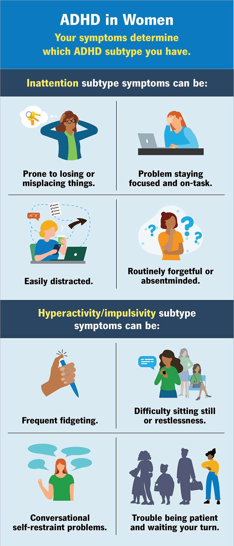 Women aren’t as likely to have hyperactive/impulsive symptoms. That means they’re less likely to have the hyperactive/impulsive or mixed subtypes.
