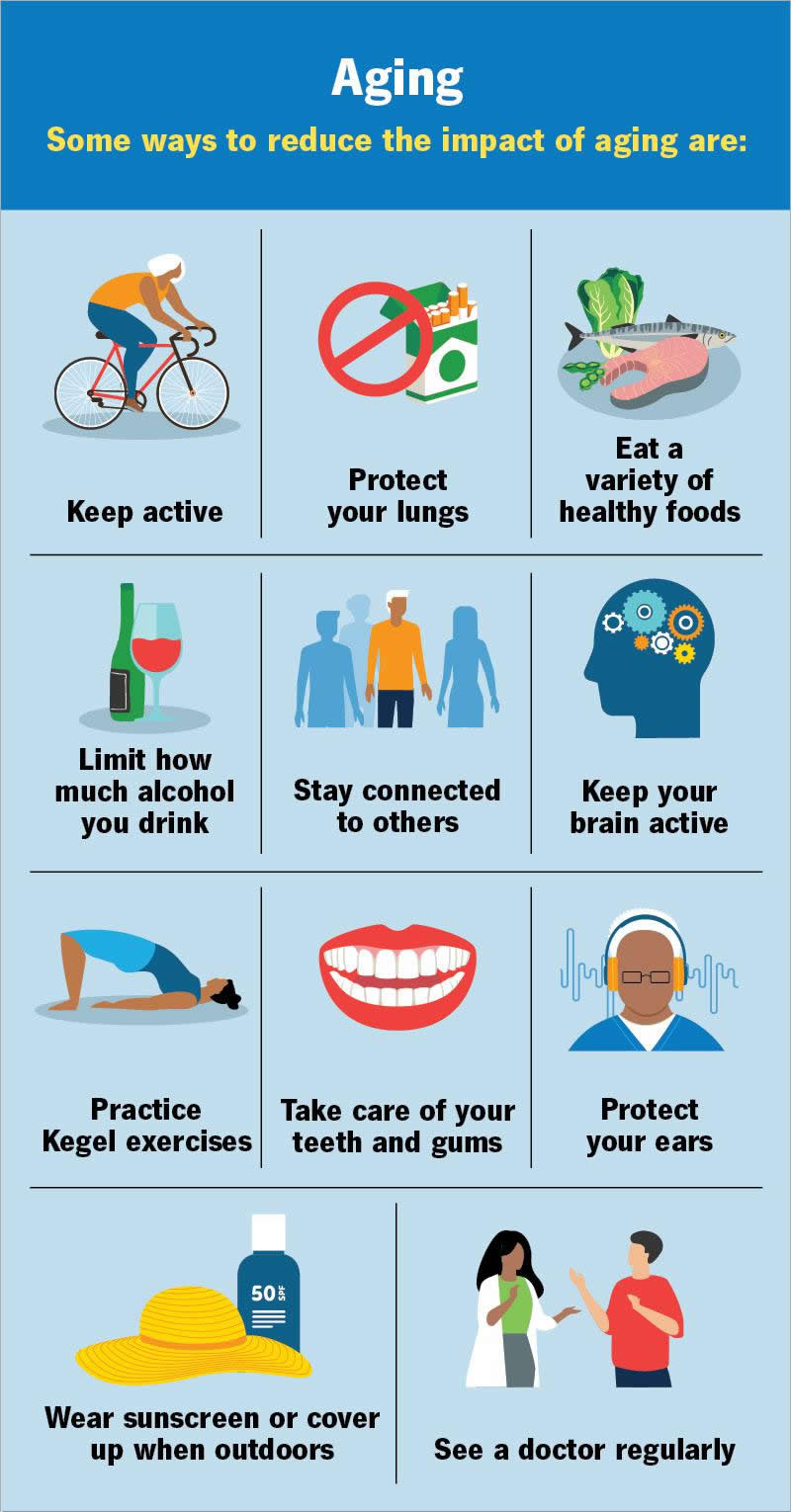 No one can avoid aging altogether. And its effects are easier to prevent or slow down than they are to reverse once they happen. But there are ways you can reduce the impact of aging. You can: