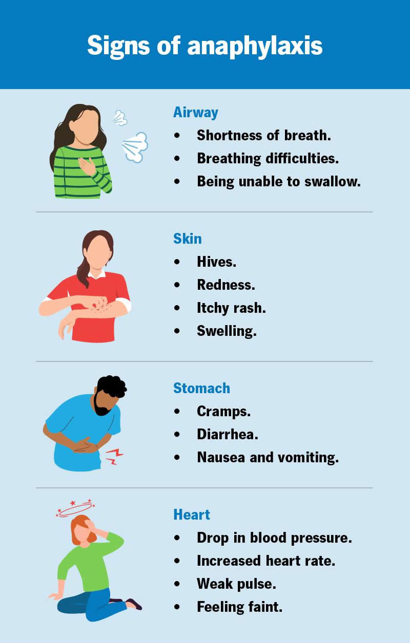 - Don’t wait to inject: Use your epinephrine injection promptly if you come into contact with your allergen. Don’t wait to see if your reaction worsens.