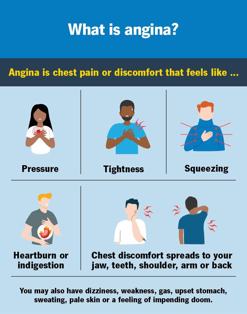 Angina can be a warning sign of a heart attack — sometimes days or weeks in advance. If you have unexpected, severe or worsening chest pain, call 911 (or your local emergency services number).