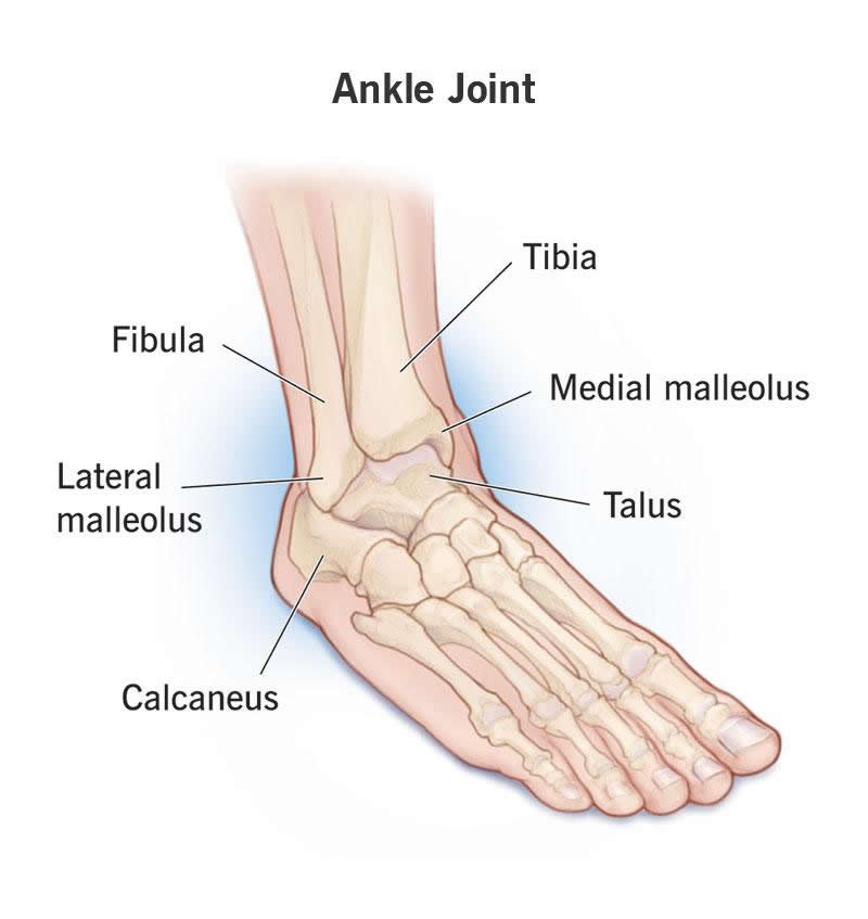 The ankle joint is where your shin bone (tibia), calf bone (fibula) and talus bone meet. It joins your foot to your lower leg. Your ankle also contains cartilage, ligaments, muscles, nerves and blood vessels. Your ankles move in two main directions and you use them any time you move your feet and legs.