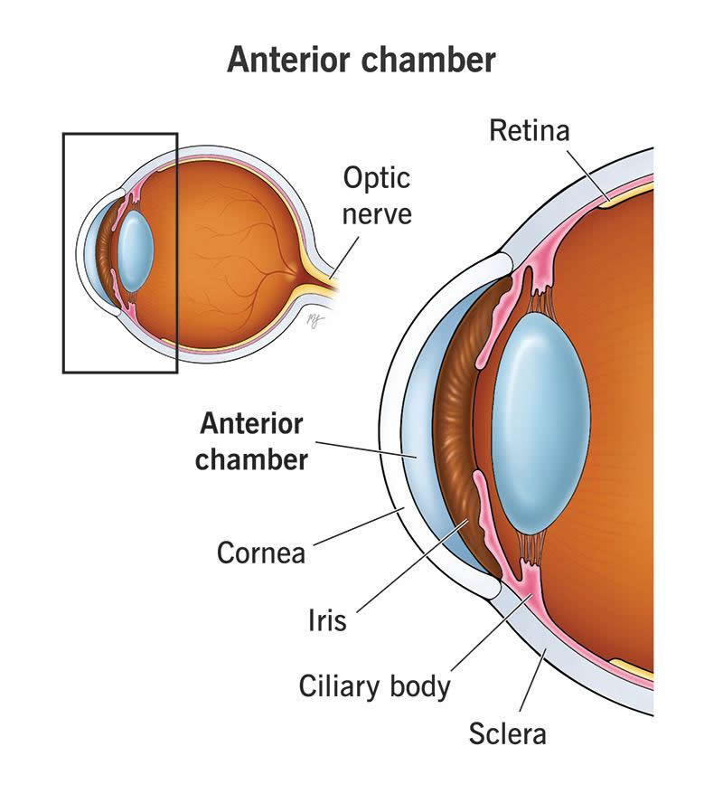 The pressure inside your anterior chamber needs to be high enough to keep your eye the right shape. But if the pressure gets too high (ocular hypertension), it forces parts of your eye behind the iris backward so they press on your retina and optic nerve. That’s what happens when you have glaucoma, one of the leading causes of blindness worldwide.