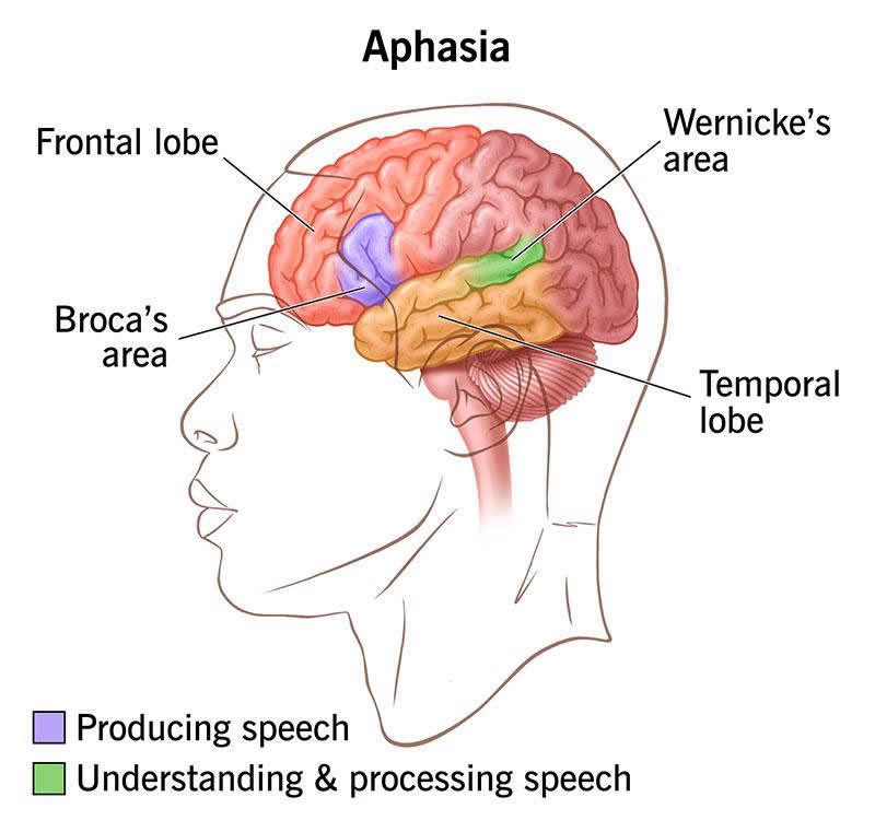 The location of the damage in your brain determines the type of aphasia you have. There are two main parts of your brain that involve language, including: