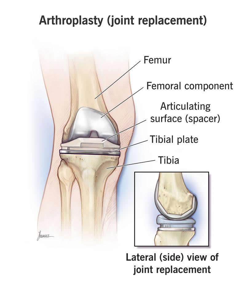 - Total joint replacement (total arthroplasty): During a total joint replacement, your surgeon will replace all the parts of your joint with a prosthetic joint.