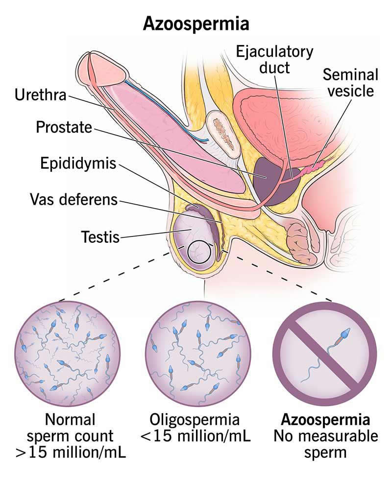 Receiving an azoospermia diagnosis can have physical and emotional side effects. It’s important to rely on your healthcare provider’s expertise and lean on your partner while you navigate the best treatment. Your provider may recommend tests to get to the root cause of why you have no sperm. In the meantime, talk to your partner, family or friends about how you’re feeling. It’s normal to feel upset about a setback like this, but don’t let hopelessness set in. Many people go on to have biological children.