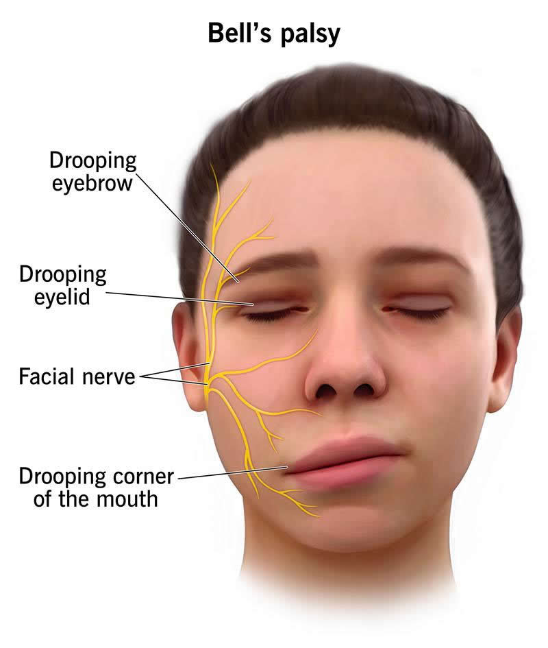Bell’s palsy temporarily weakens or paralyzes facial muscles. People with Bell’s palsy develop a droopy appearance on one — or sometimes both — sides of their face. The condition usually isn’t serious and often goes away in a few months without treatment.