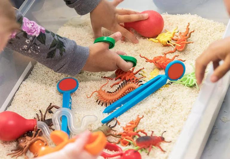 Sensory play can help your child develop fine motor skills like tying their shoe, writing and zipping their coat. Through tactile play that focuses on building, pouring and mixing, your child builds on their ability to use small muscle groups and coordinate movements.