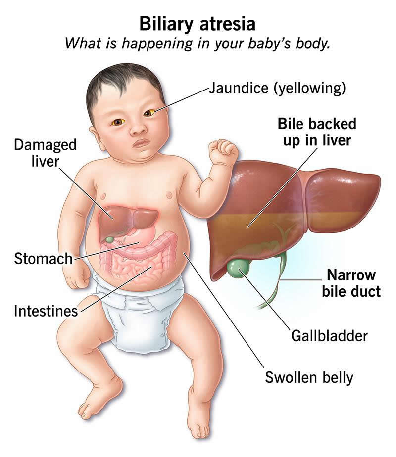 Biliary atresia is a condition that affects an infant’s liver. Bile normally flows from your baby’s liver to their small intestine. But with biliary atresia, your baby’s bile ducts (tubes that carry the bile) are blocked. So, bile builds up in their liver and damages it. Surgery improves bile flow, but most babies end up needing a liver transplant.