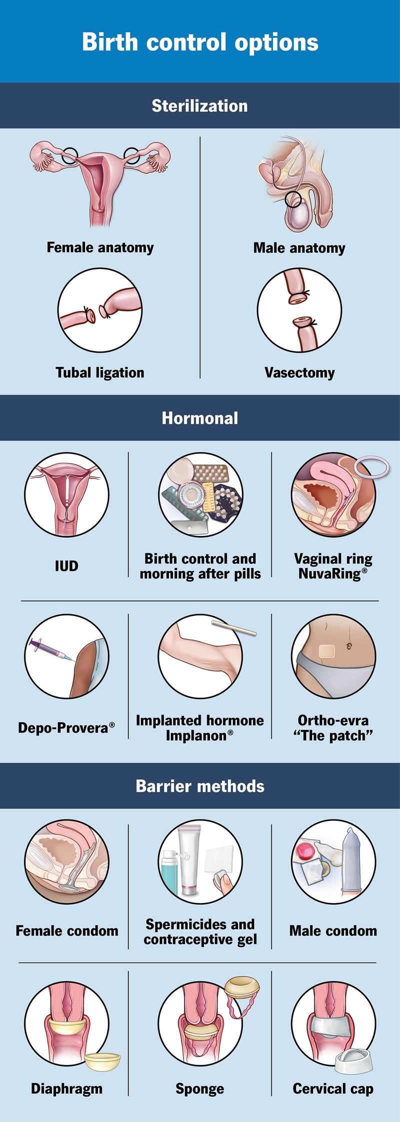 By learning more about the different forms of birth control, you can decide what method is best for you. Some things you should consider include how often you have sex, your overall health and your future plans for children. Another important factor is convenience. Certain birth control options require daily upkeep (like a pill) to be effective, while other methods (like an IUD) are “get it and forget it” because they last for years. Some birth control methods are easier to keep hidden from others, and some are better at preserving sexual spontaneity than others. Discuss your options for birth control with a healthcare provider. They can help you understand how each form of contraception works as well as the risks and benefits of each.