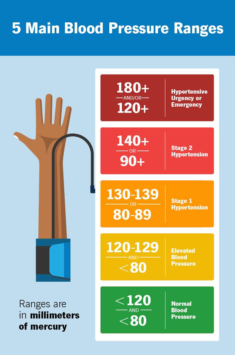 Healthcare providers generally use the following categories to describe your blood pressure (these apply to all adults, regardless of sex):