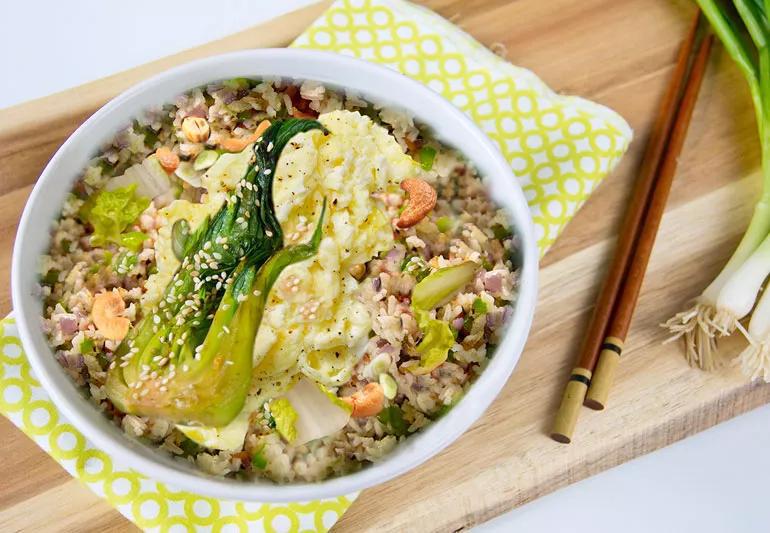 Fried rice might not be on your idea list for breakfast food … but maybe it should be. This recipe brings together brown rice, vegetables and scrambled eggs for a belly-filling treat. (The flavor trio of ginger, garlic and green onion promises to make it memorable, too.)