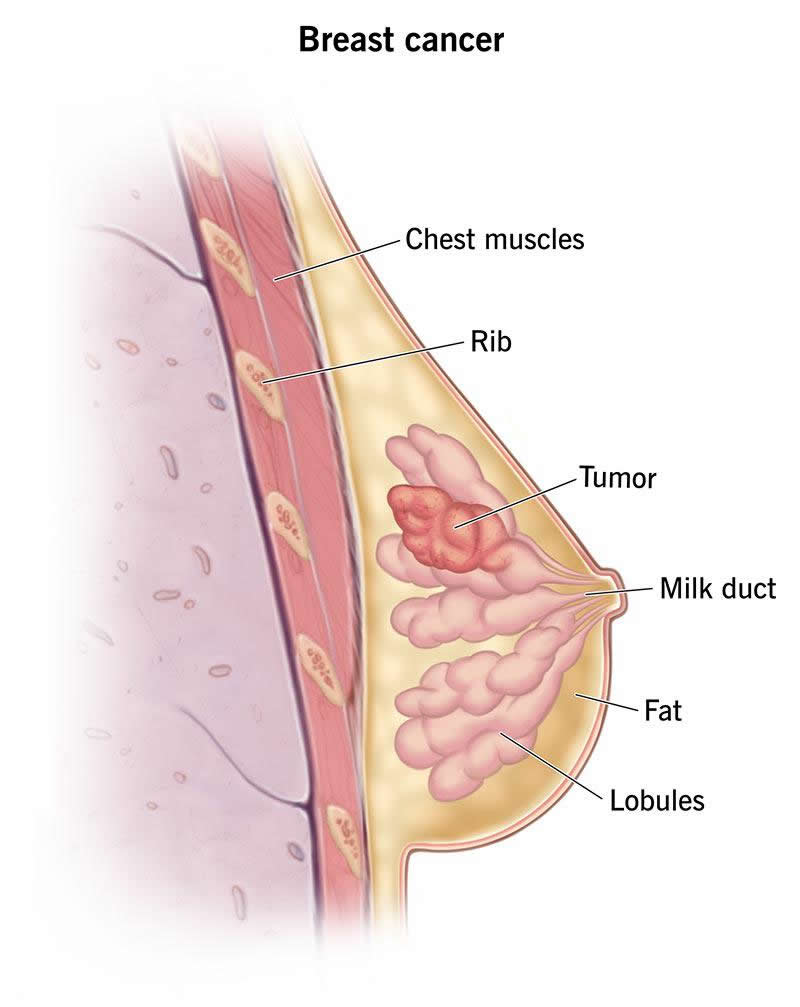 Breast cancer is when breast cells mutate and become cancerous cells that multiply and form tumors. Breast cancer typically affects women age 50 and older, but it can also affect men, as well as younger women. Healthcare providers may treat breast cancer with surgery to remove tumors or treatment to kill cancerous cells.