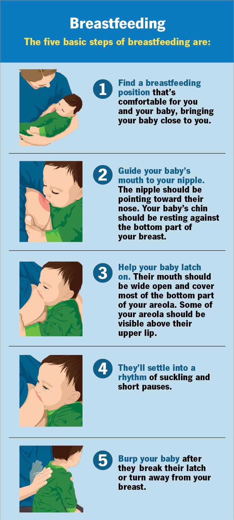 - Find a breastfeeding position that’s comfortable for you and your baby, bringing your baby close to you.