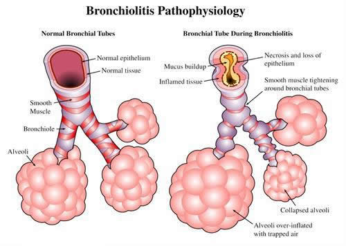 A virus causes a bronchiolitis infection. Viruses that can lead to bronchiolitis include: