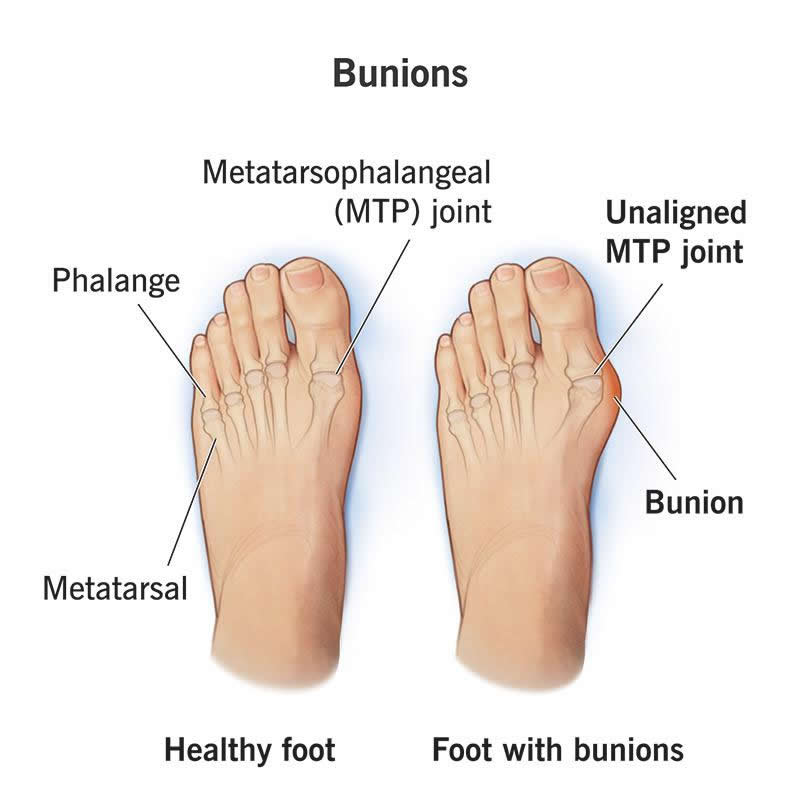 There’s not just one reason why bunions develop. It’s thought that a combination of factors — like family history, abnormal bone structure, increased motion and shoe choice — can cause them. When something puts extra pressure on your big toe joint for a long time (usually years), that pressure can push your joint out of its natural alignment and toward your other toes. Eventually, a bunion forms on your MTP joint when your body compensates for your toe being pushed out of its usual place.