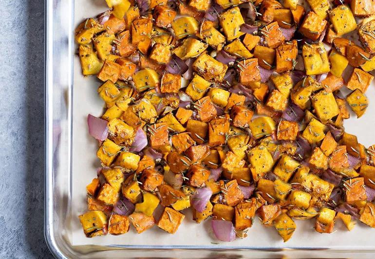 Roasting a butternut squash caramelizes its natural sugars and really brings out that oh-so-sweet taste. See for yourself with this savory side dish of herb-roasted butternut squash with shallots and garlic.