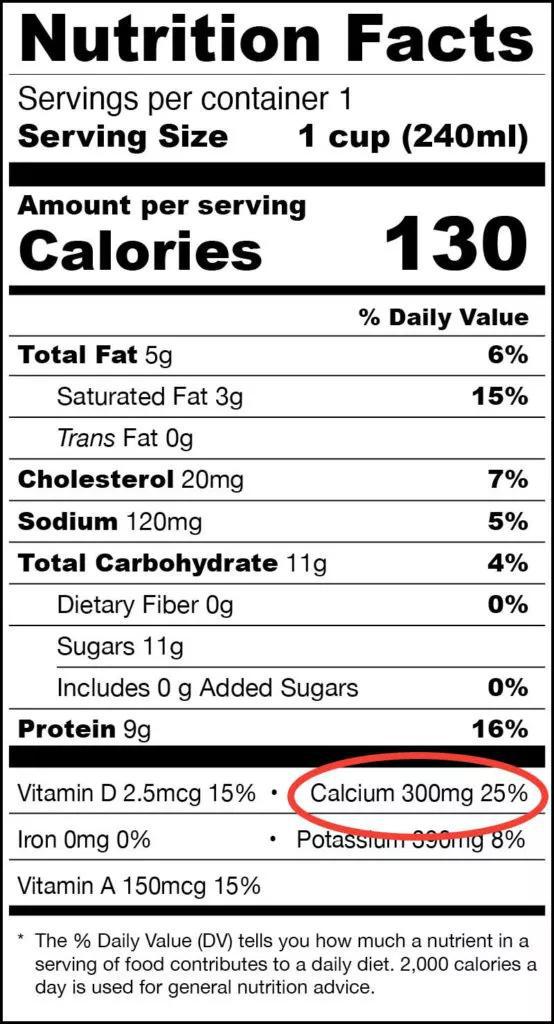 And don’t forget to check the serving size. If you consume more or less than a serving, the amount of calcium will change accordingly. So, if one cup of milk has 300 milligrams of calcium, a half-cup contains 150 milligrams.