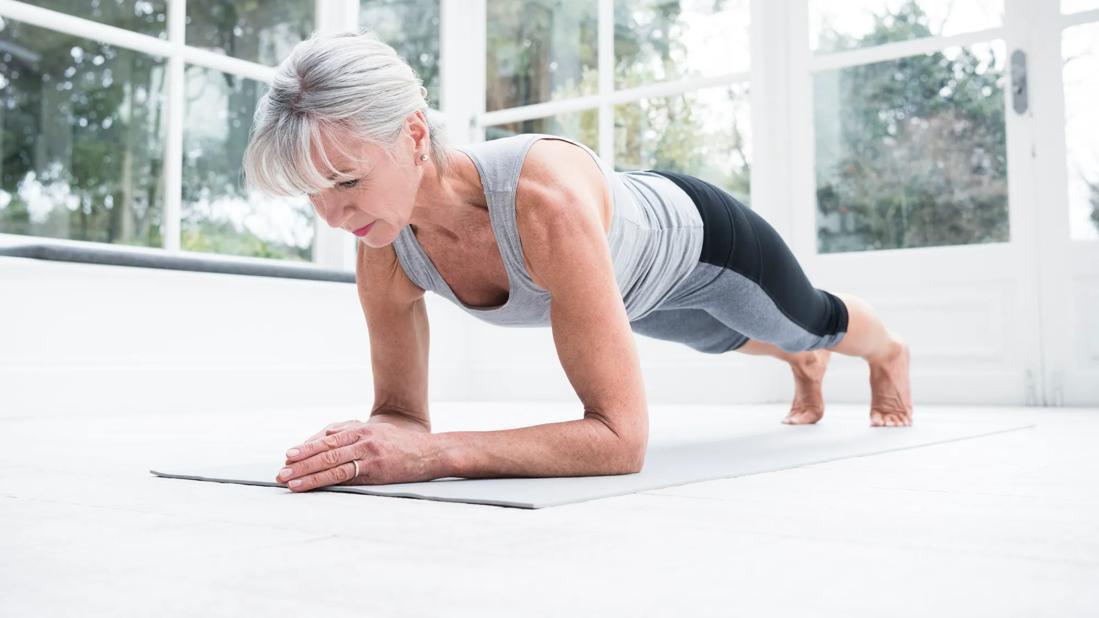 - If you’re a beginner, you might want to skip the push-up and place your hands on a chair to perform the plank.