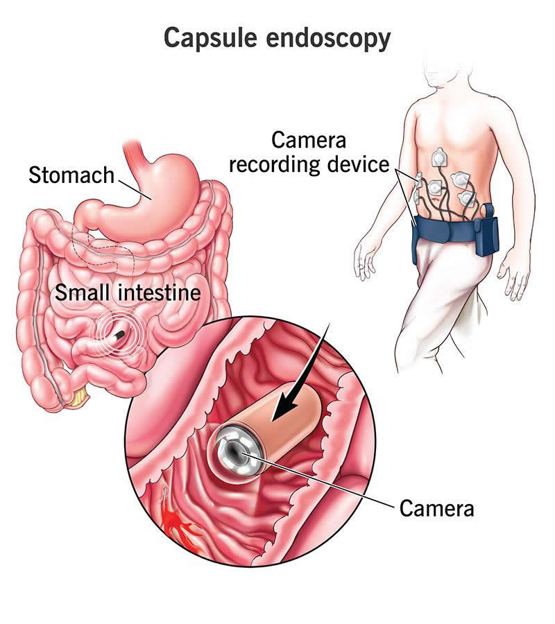 A capsule endoscopy spots bleeding and other problems in your digestive tract. It’s one of the only tests that helps your healthcare provider examine your whole small intestine. Other diagnostic procedures use a thin, flexible tube with a camera. This tube doesn’t reach your entire small intestine. But the capsule can. It takes pictures of your whole digestive tract, including parts of your small intestine that are hard to reach.