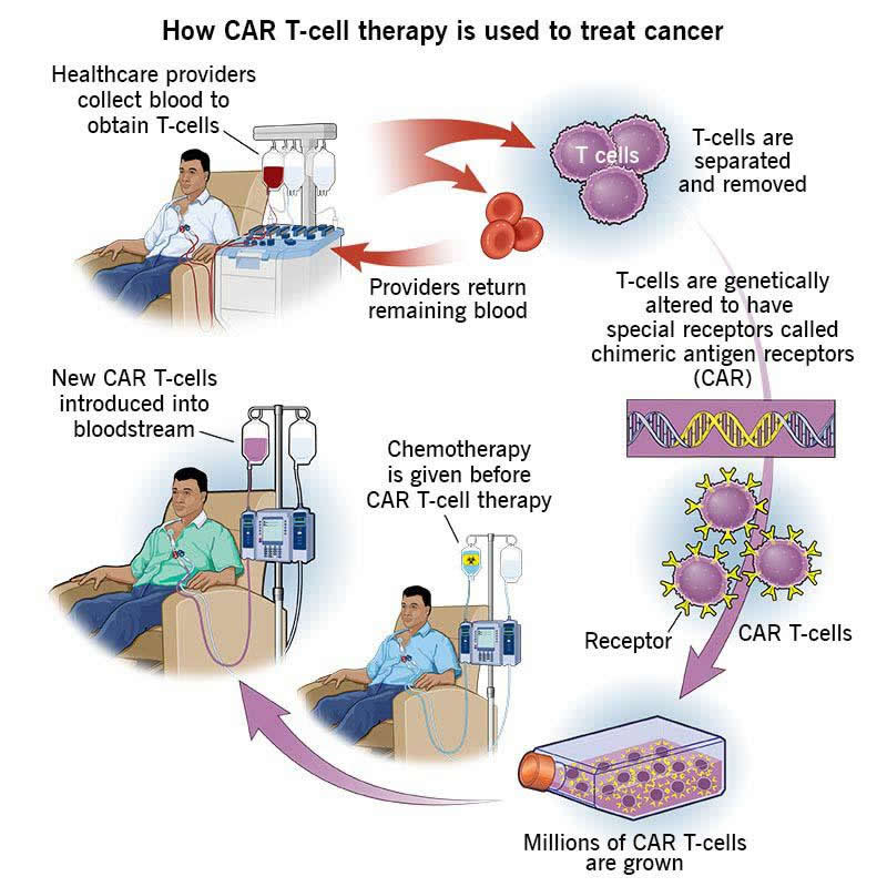 Chimeric antigen receptor (CAR) T-cell therapy treats some types of blood cancer. Scientists create the treatment by adding a lab-made gene to your cancer-fighting T cells. The change helps T cells detect and kill cancerous cells. Healthcare providers may use this treatment when other treatments aren’t effective or blood cancer comes back.