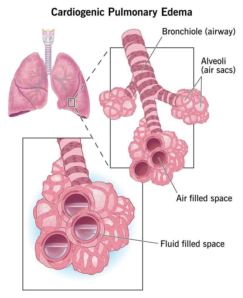 Cardiogenic pulmonary edema is a life-threatening accumulation of excess fluid in your lungs because of pressure in your heart. Medications can get rid of the extra fluid, but your healthcare provider may need to do procedures as well. Treatments vary depending on the cause. The outlook for this problem depends on what’s causing your edema.