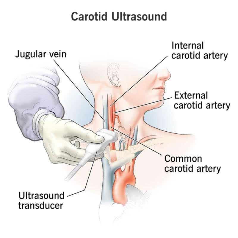 You may need a carotid artery ultrasound when your healthcare provider wants to look for blood clots or plaque (fat and cholesterol deposits) on your carotid artery walls. These plaque deposits can limit ― and eventually block ― the flow of blood to your brain, face and neck. A blocked carotid artery can cause a stroke.