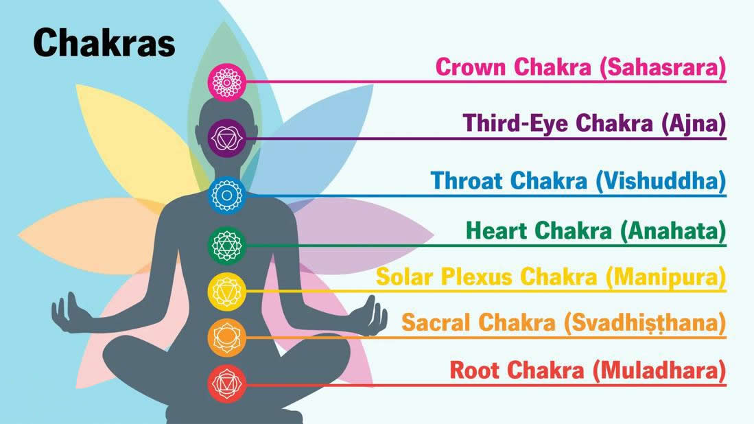 The word “chakra” itself is based on the Sanskrit word for “wheel” or “circle,” and the concept has origins in both the Hindu and Buddhist faiths. The seven chakras are said to represent energy sources throughout your body. Each chakra corresponds to: