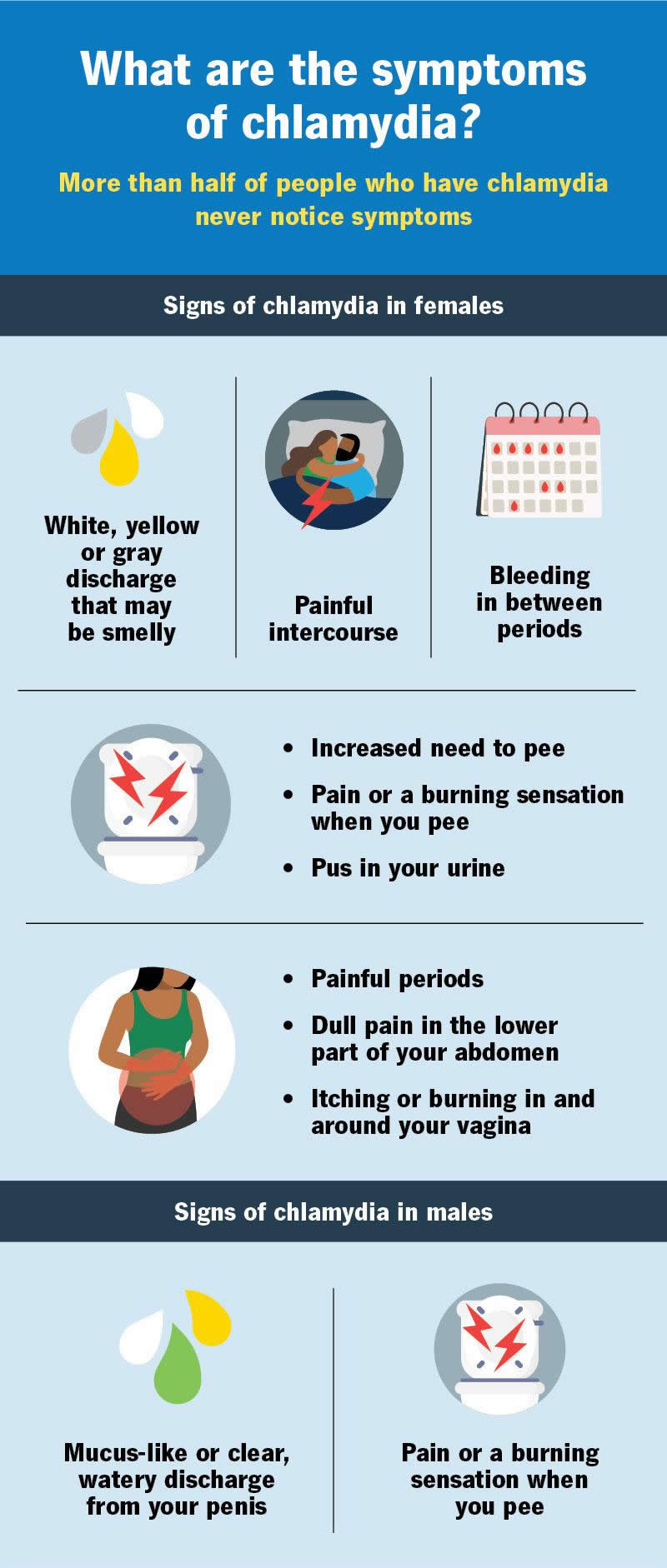 Chlamydia is sometimes called a silent infection because the majority of people (between 50% and 70%) who have chlamydia — regardless of sex — never notice symptoms.