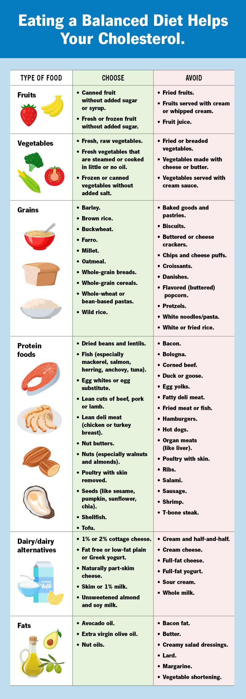 The foods you eat can have a powerful effect on your health, including your cholesterol levels. If you’re starting to make changes to your diet, be patient with yourself. Don’t expect to overhaul your eating plan overnight. Make small, simple changes, and gradually add more as you go along. You might miss some of your favorite foods. But try to focus on the new foods you’re exploring, rather than the ones you’re limiting.