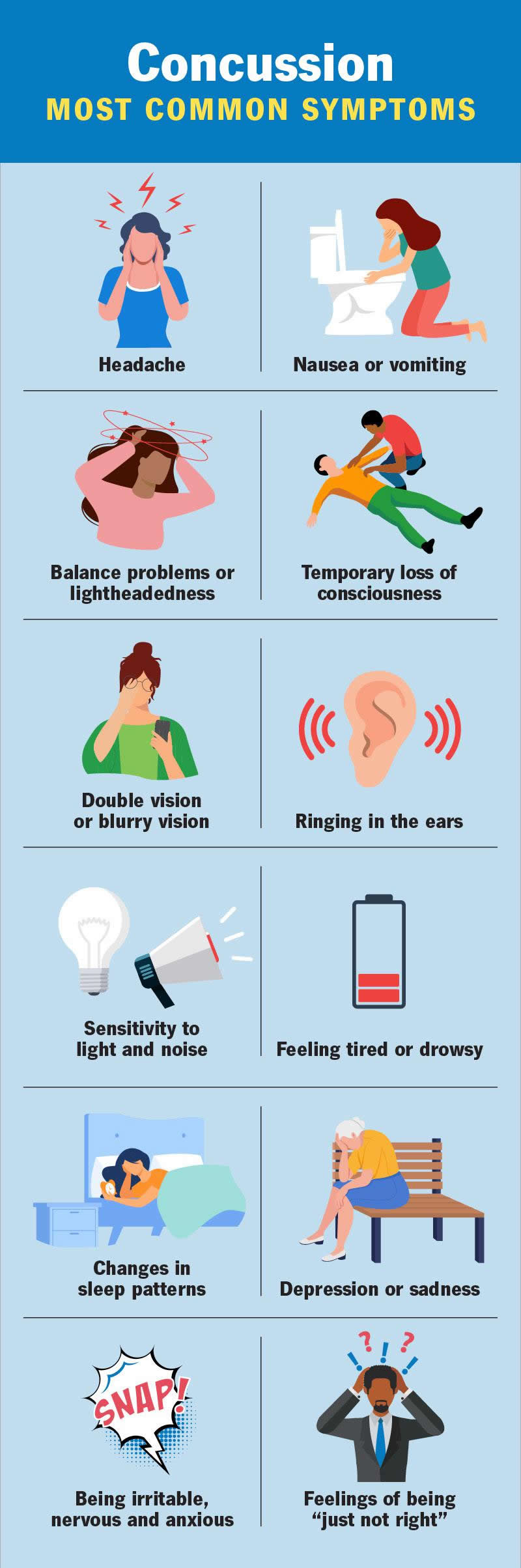 One commonly held myth is that a concussion happens only if you lose consciousness. In fact, most people who have a concussion never lose consciousness. It’s also possible that you, your child or another loved one may have had a concussion and not even know it. That’s why it’s important to get checked even if you think the knock to your head isn’t serious.