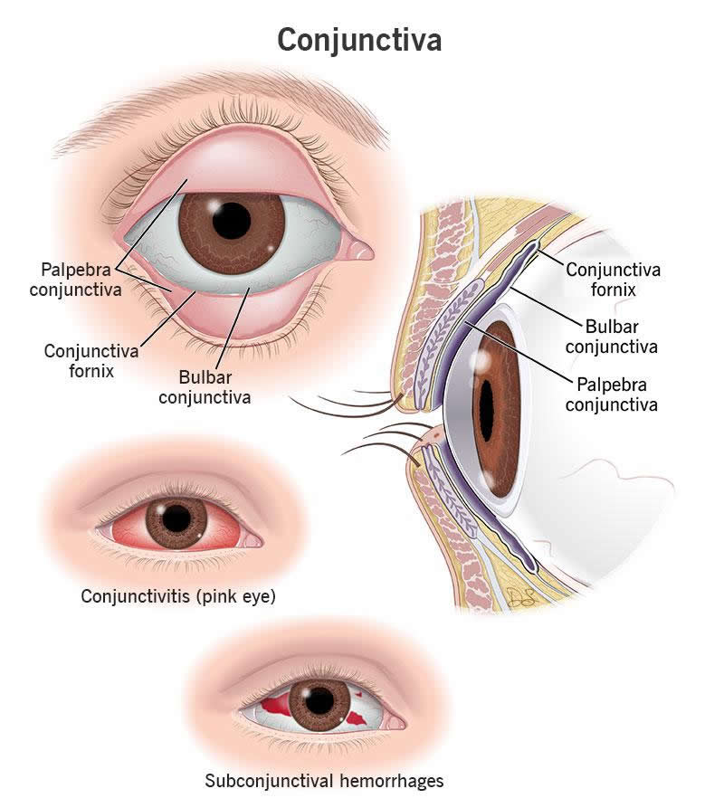 The conjunctiva keeps your eye lubricated and prevents irritants from getting in. It works with a few glands to create your tears and protects the white part of your eyes from damage. Common conditions like pink eye (conjunctivitis) and subconjunctival hemorrhages are usually minor issues that require very little treatment.