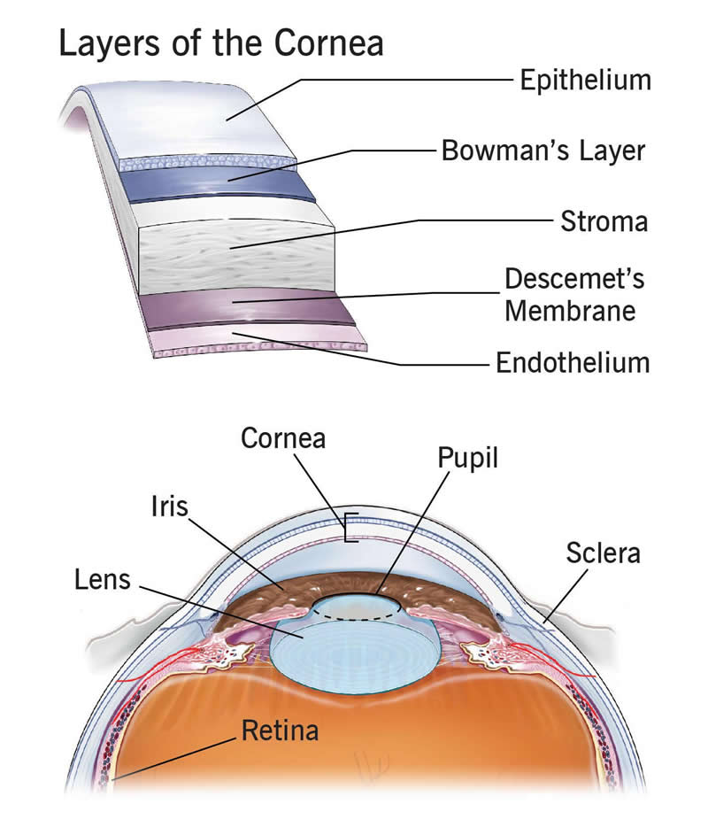 There are three surgical options for cornea transplant: penetrating keratoplasty, deep anterior lamellar keratoplasty and endothelial keratoplasty. Your cornea has three layers of tissue. Each of these surgeries targets a specific layer or layers of tissue.