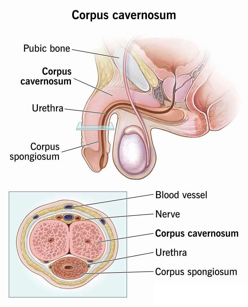 The corpus cavernosum is one of two chambers in your penis that fill with blood to help create an erection. They run the length of your shaft, on either side of your urethra. Contact a healthcare provider if you have pain, problems peeing or trouble getting or keeping an erection.