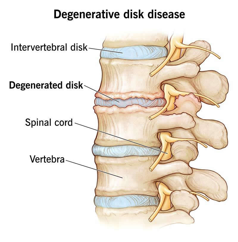 Degenerative disk disease (sometimes spelled degenerative disc disease) isn’t actually a disease, but rather, it’s a condition that occurs when your spinal disks wear down. Spinal disks are rubbery cushions between your vertebrae (bones in your spinal column). They act as shock absorbers and help you move, bend and twist comfortably. Everyone’s spinal disks degenerate over time — it’s a natural part of aging.