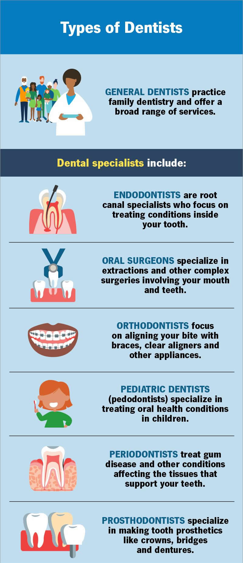 - Oral surgeons: Specialists who do extractions and other complex surgeries involving your mouth and teeth.