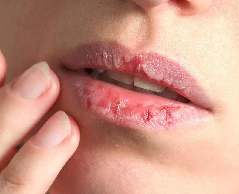 Picking usually involves fingernails and fingertips but can also include biting with your teeth (especially when the skin surface affected is on your lips. It can also involve sharp items like tweezers or pins.