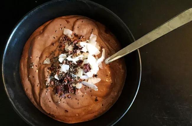 Who doesn’t love a scoop of chocolate pudding? Throw in some chia seeds, coconut flakes and cinnamon for a yummy, chocolatey treat.