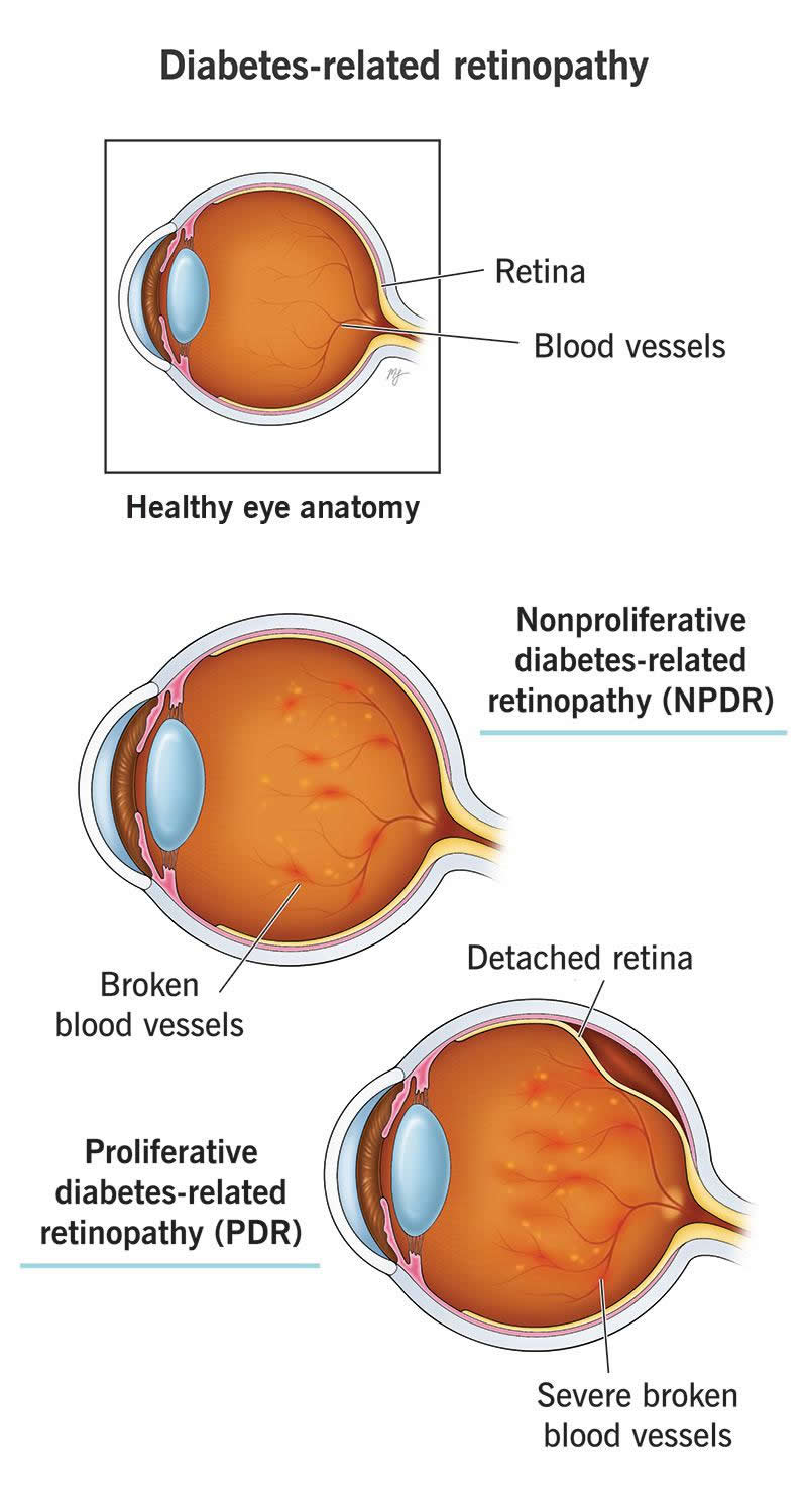 Diabetes-related retinopathy is an eye disease that weakens the blood vessels in your retinas. The weakened blood vessels damage your retina. That can cause vision loss and even permanent blindness when the damage becomes severe enough.
