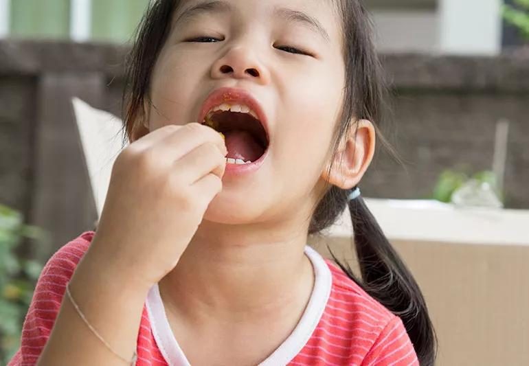 - “Grazing” or excessive snacking: This is one of the most common pitfalls. Families should set meal and snack times so that the child has time to get hungry before sitting down to a nutritionally balanced dinner. “Grazing” will fill the child up on foods with low energy density. They’ll actually get more calories if they wait for meals.
