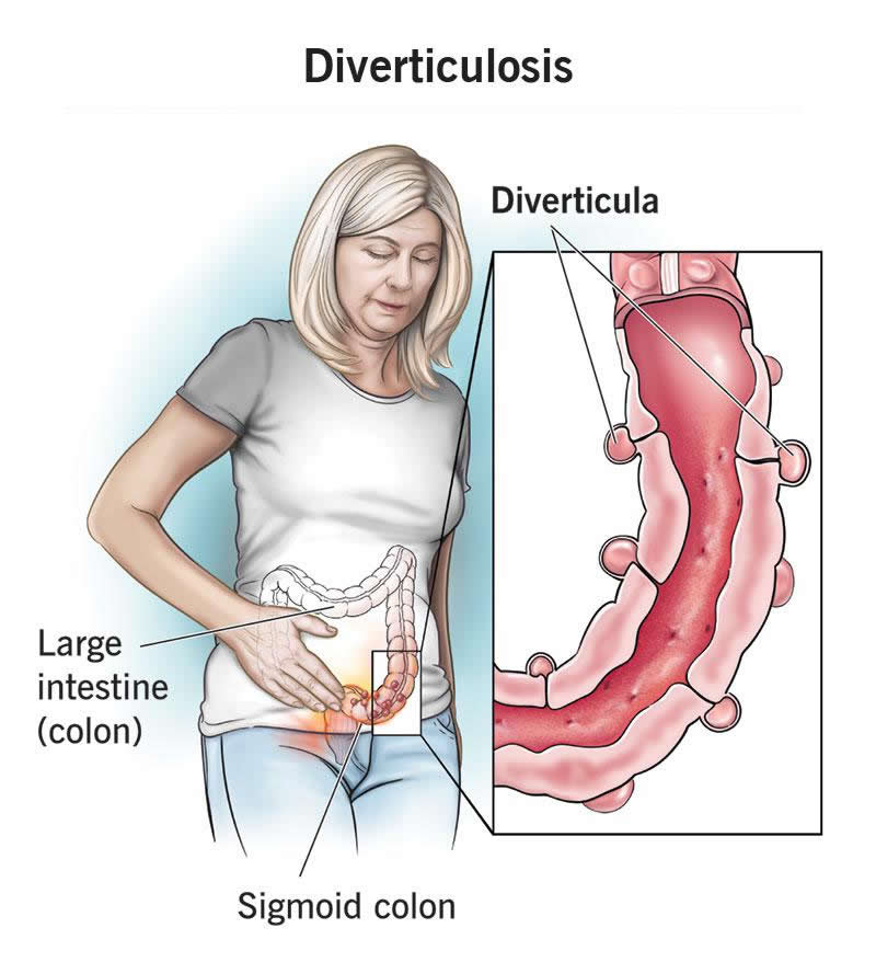 Diverticulosis is a common condition that can develop in your colon, especially as you get older. It means that little pouches form in the inside lining of your colon. They usually don’t cause any problems. But rarely, they may bleed or develop an infection (diverticulitis).