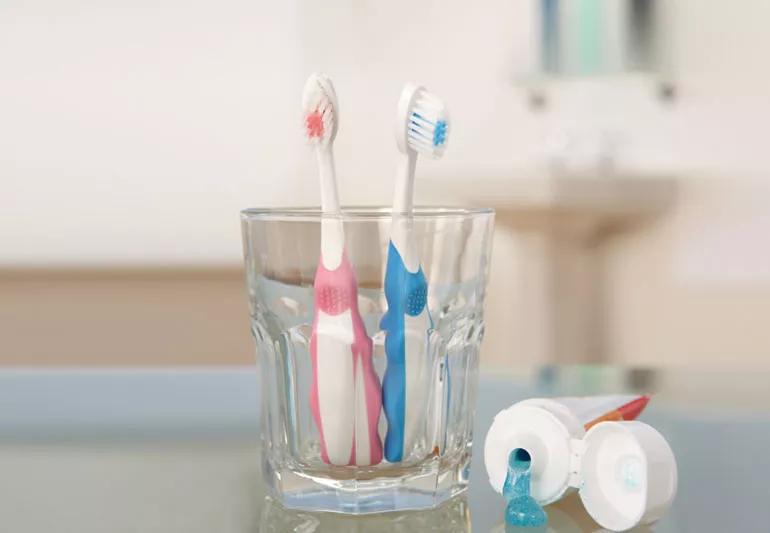 Have a cold, sore throat or other virus? Keep your toothbrush from touching the family toothpaste and others’ toothbrushes.
