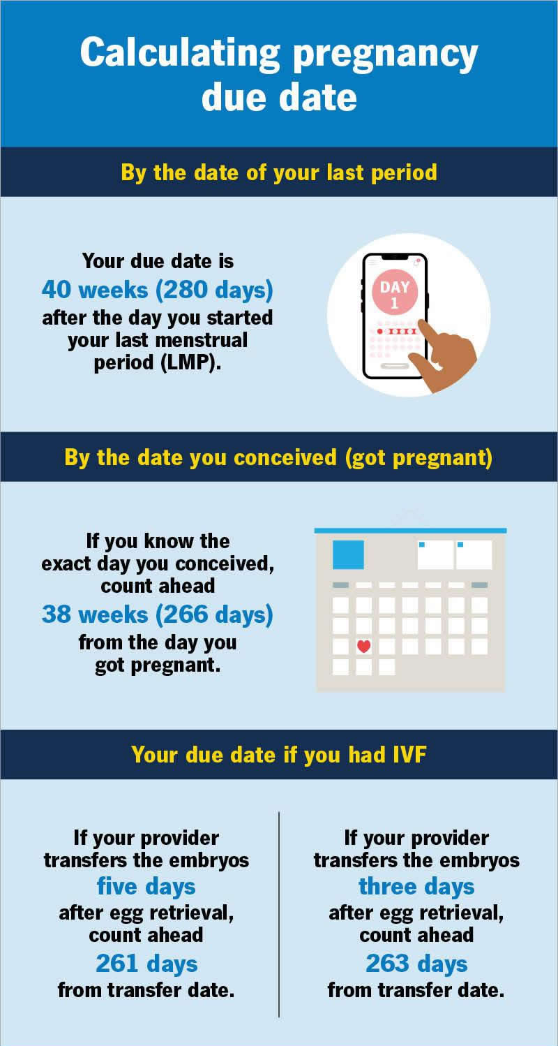 If you did in vitro fertilization (IVF) to get pregnant, you can use your IVF transfer date to calculate your due date: