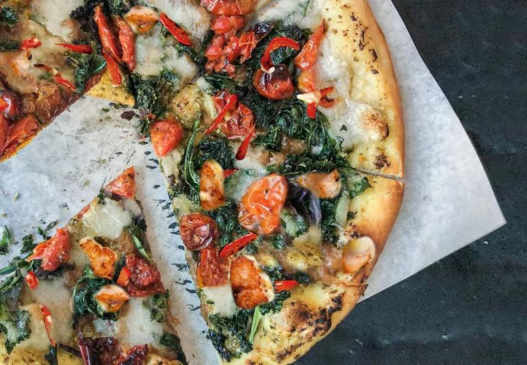 Grilled chicken pesto pizza