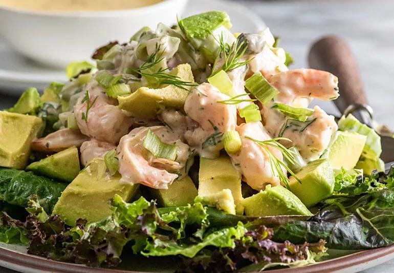 Full of vitamins, minerals and healthy fats, avocados have many benefits. This salad makes avocados the central focus when paired with cooked bay shrimp in a dill sauce that’s creamy and delightful for any palate.