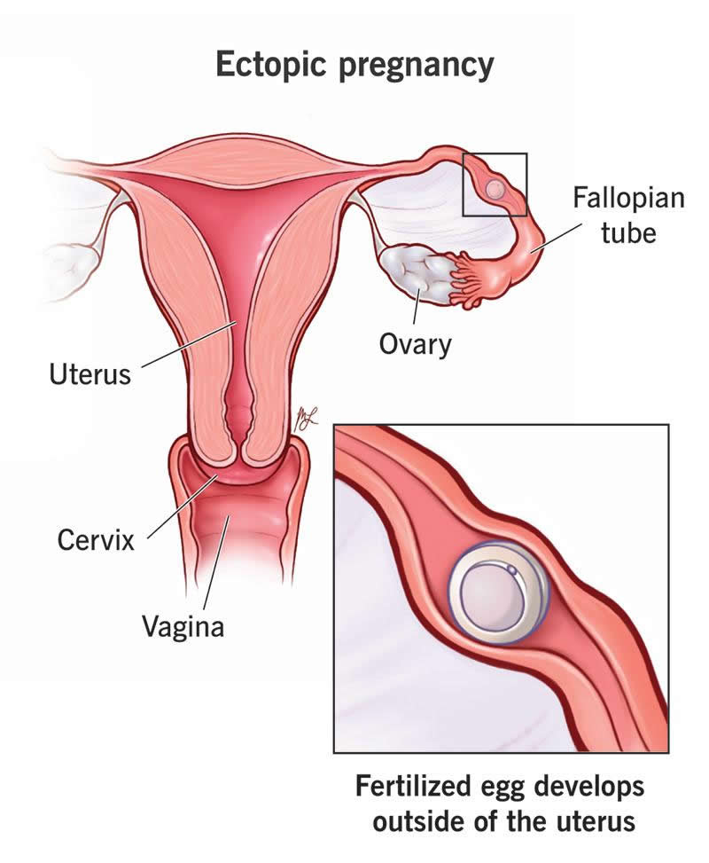 An ectopic pregnancy happens when a fertilized egg implants outside of your uterus, most commonly in your fallopian tube. The fallopian tube isn’t made to hold a growing embryo. This condition can lead to bleeding in the birth mother. An ectopic pregnancy is a life-threatening condition that requires emergency treatment.