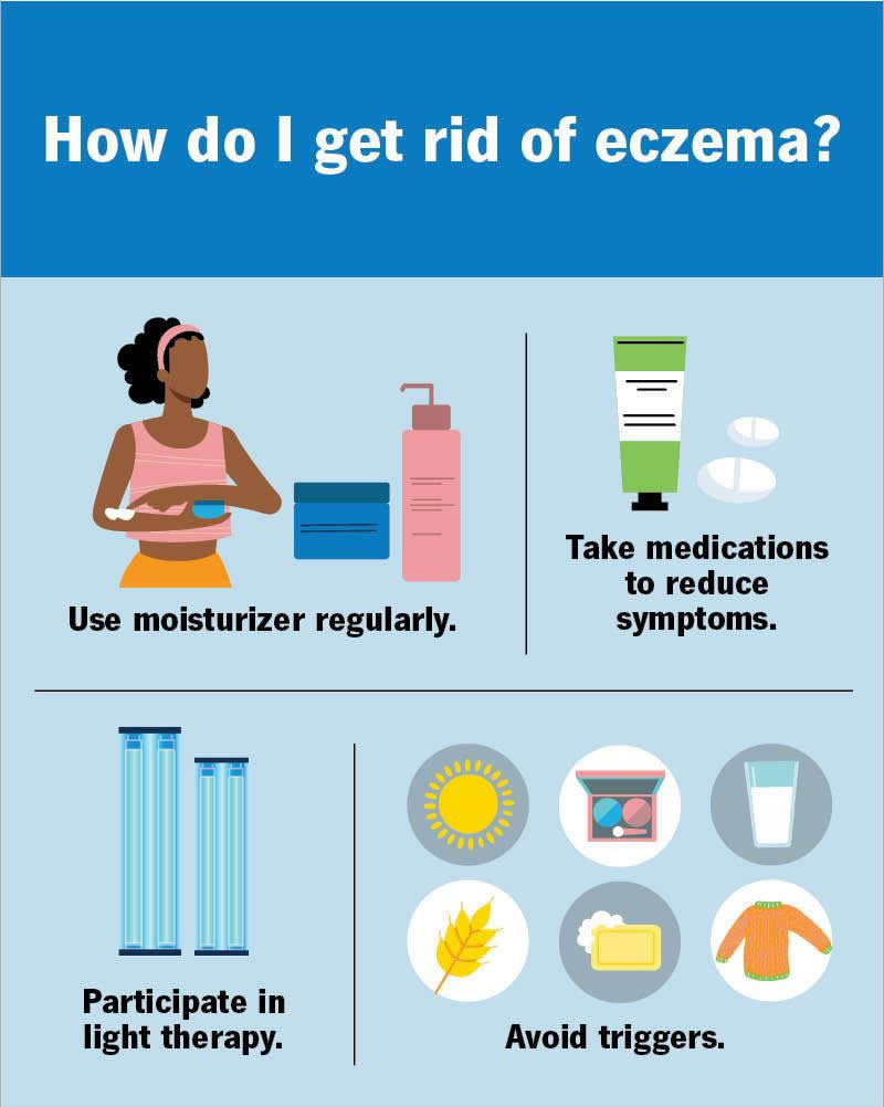 - Avoid triggers that cause symptoms of eczema to flare up.